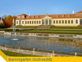Der romantisch gelegene Barockgarten Großsedlitz liegt auf den linkselbischen Höhen vor der Stadt. Überzeugen Sie sich von der barocken weitläufigen Gartenkunst mit den anmutigen Wasserspielen, Skulpturen, den mediterranen Pomeranzen und phantasievoll gestalteten Blickachsen.